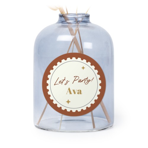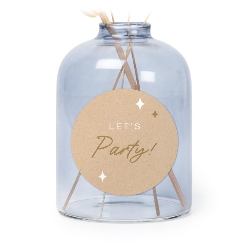 Choose your design for Personalised Blue Glass Vase with Round Stickers – Set of 6